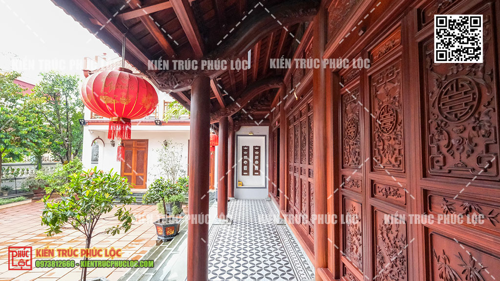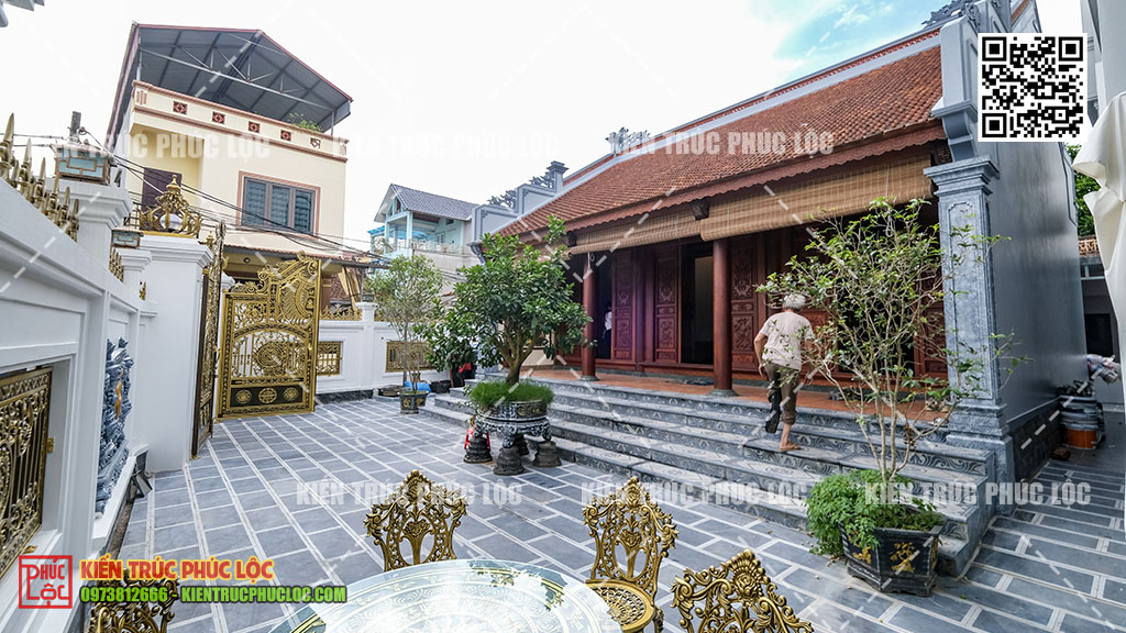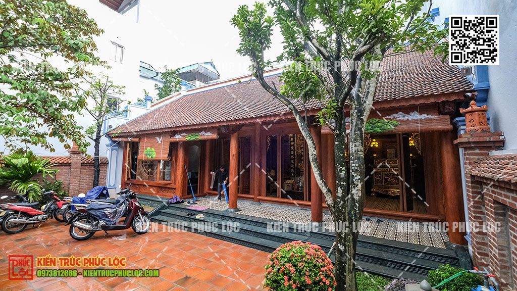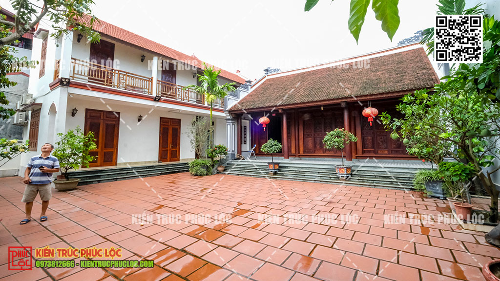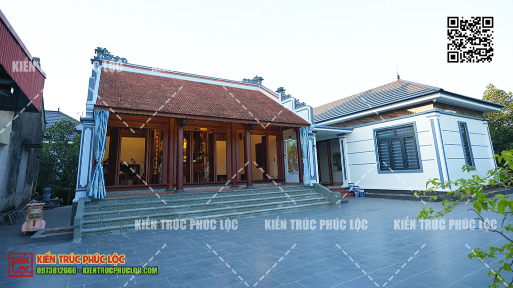 - Phân chia chức năng rõ ràng: Nhà gỗ giữ nguyên làm không gian thờ cúng, tiếp khách trang nghiêm. Nhà ngang dành cho sinh hoạt hàng ngày