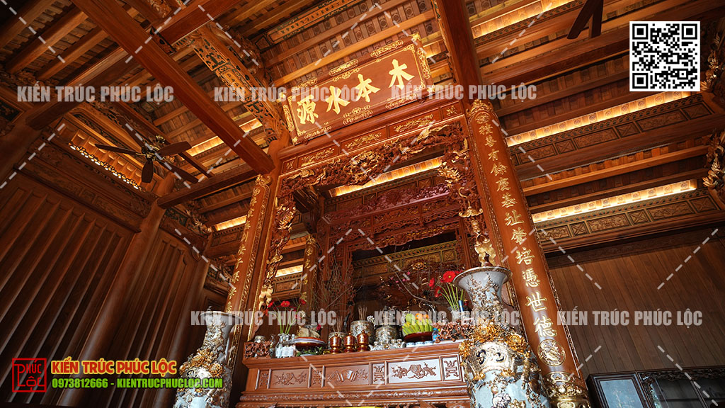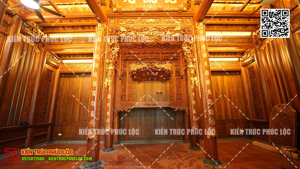 - Lắp đặt hoành phi, câu đối, cửa võng (nếu có).
