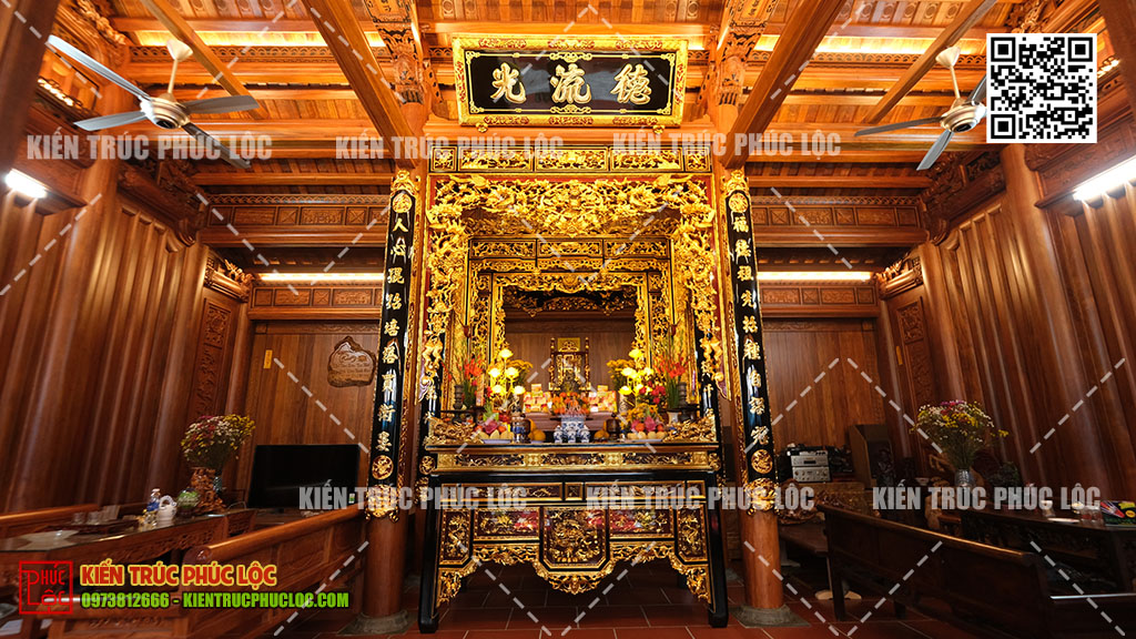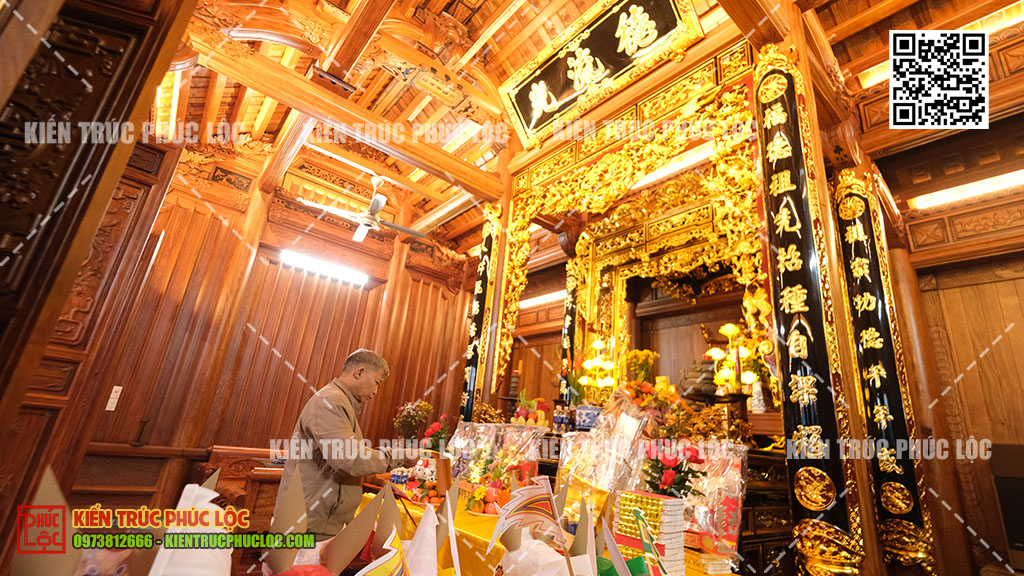 • Lựa chọn và sử dụng đồ thờ truyền thống: Vật dụng thờ như ngai thờ, khám thờ, hoành phi, cặp hạc, lư hương… thường làm từ gỗ chạm khắc tinh xảo, phù hợp với không gian thờ trong nhà cổ hoặc từ đường gỗ truyền thống.